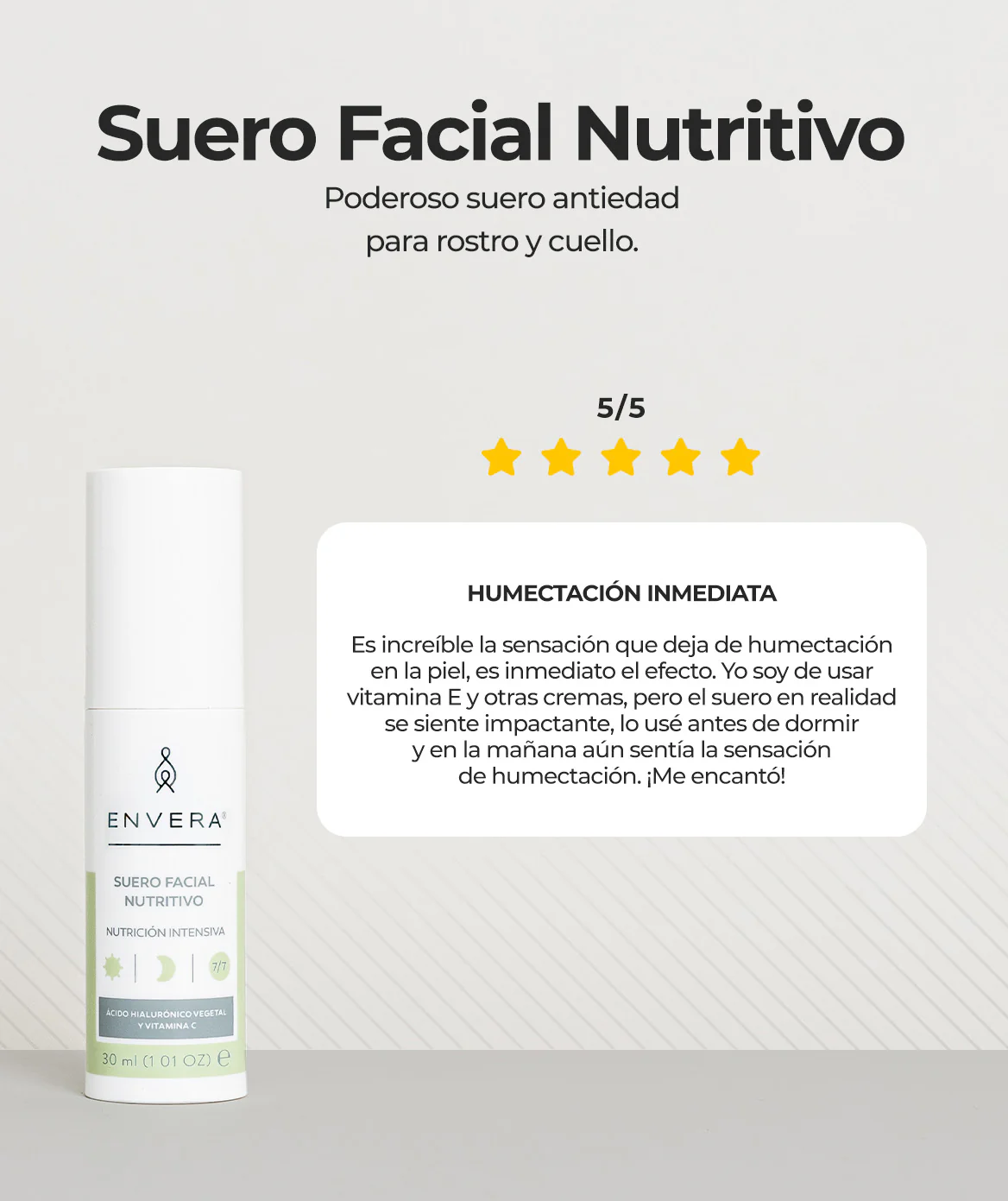 Para mejores resultados, usar de forma constante mínimo 90 días, ya que la regeneración celular requiere tiempo.